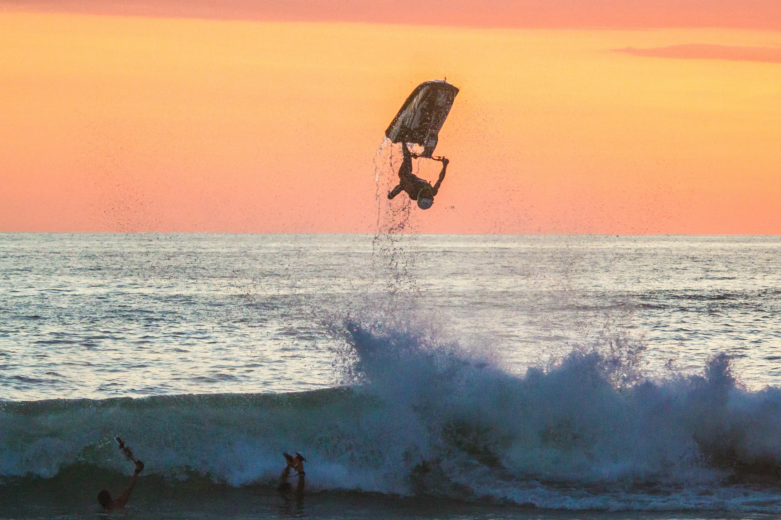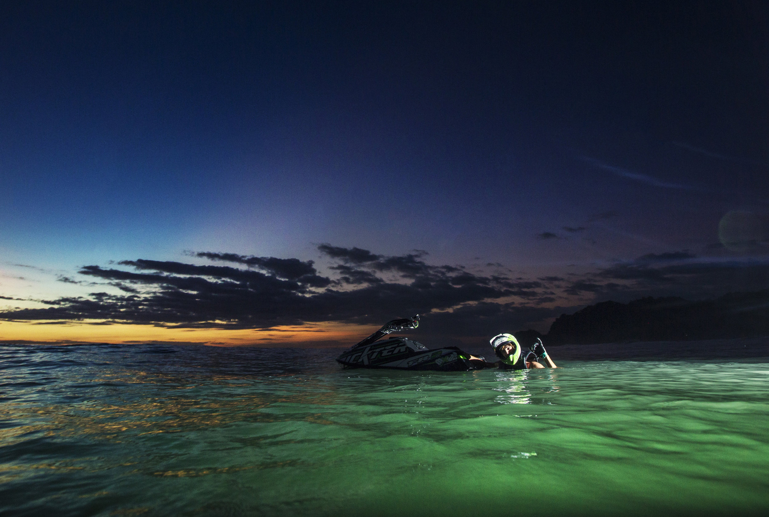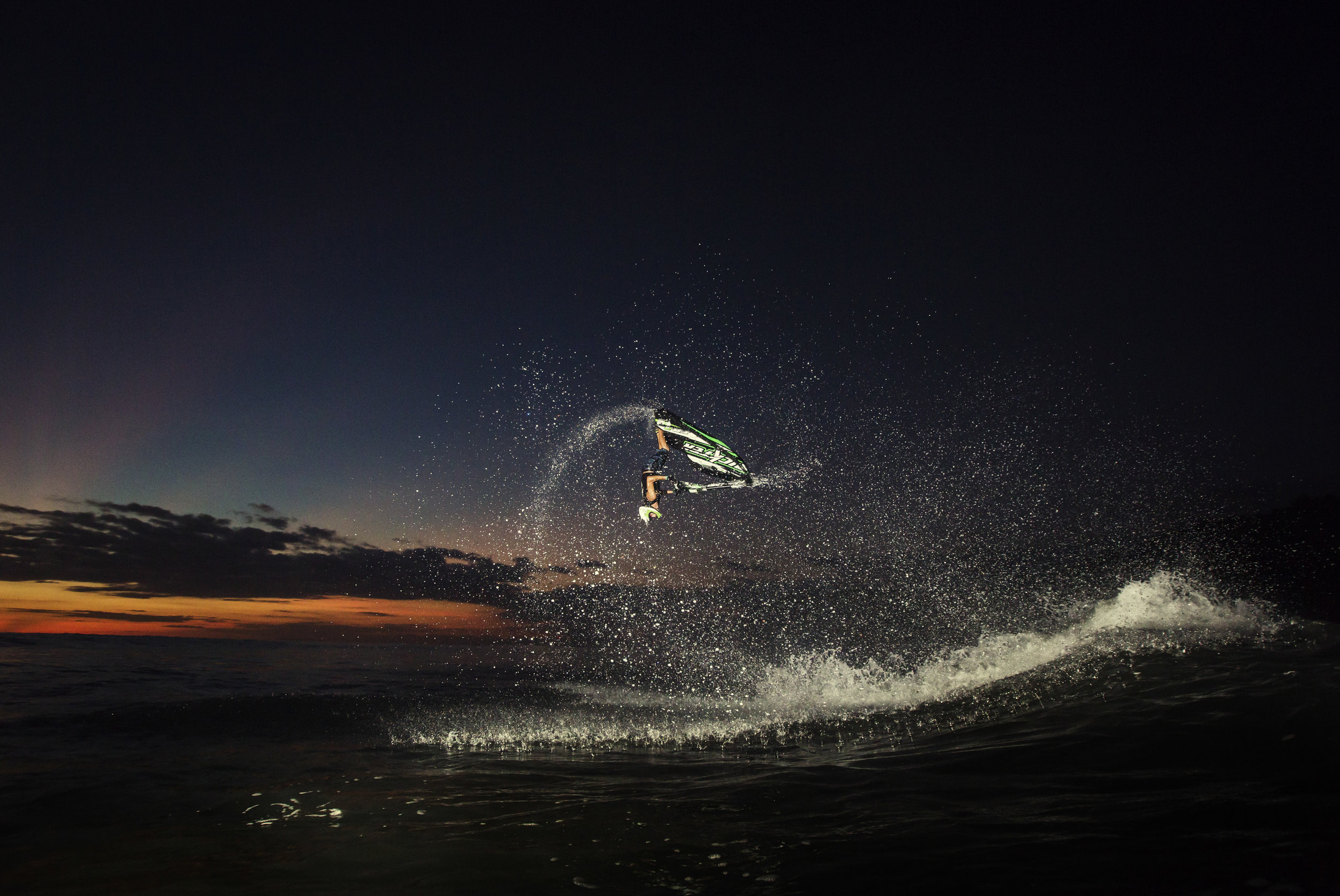 El reto en este tipo de fotos de atardecer, sobre todo en esta parte del planeta, donde el atardecer dura unos breves minutos, es el manejo de exposición, tanto de luz ambiente como de flash! y lo bueno de el equipo de housings Aquatech es que tengo full control sobre todos los mandos de cámara y flash, lo cual tampoco quita que sea complicado estar cambiando la exposición de todo y nadando entre olas con un Jetsky volando sobre  nuestras cabezas!